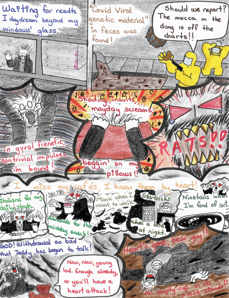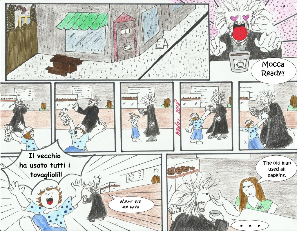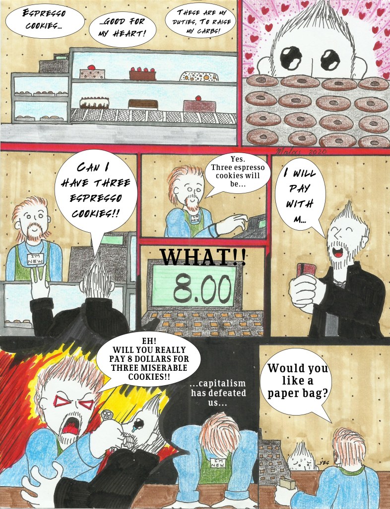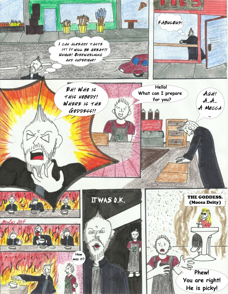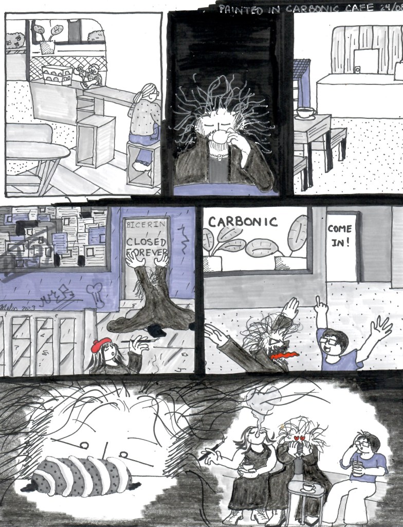 So far I move around five places. The one in the above picture is Mong’s Coffee where I discovered I can use overleaf (i.e. where we write papers. Where we are serious people.) I have drawn one cartoon there and worked in my next chapter of Epsilon-Delta. The other place I have gone is WDK Caffee, which is the coffee of a mall. I think is some sort of franchise that exists in every mall and takes the corresponding name. I have drawn cartoons here and I had a very peculiar adventure but that will be described in another post…