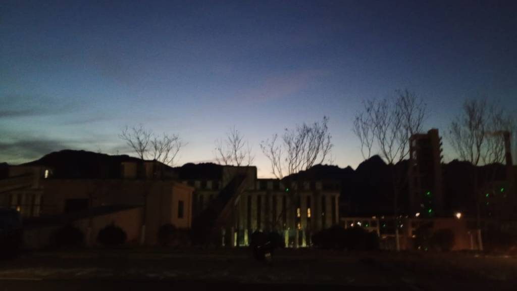 When you move through this campus and see around you see very beautiful views. You also see so many boards, there is a place to write everywhere and you can do a lot of computations on great gree boards. Then when it is late evening, not yet night, it gets dark but the sky still has different blue hues. I have been meaning to paint based on these views.