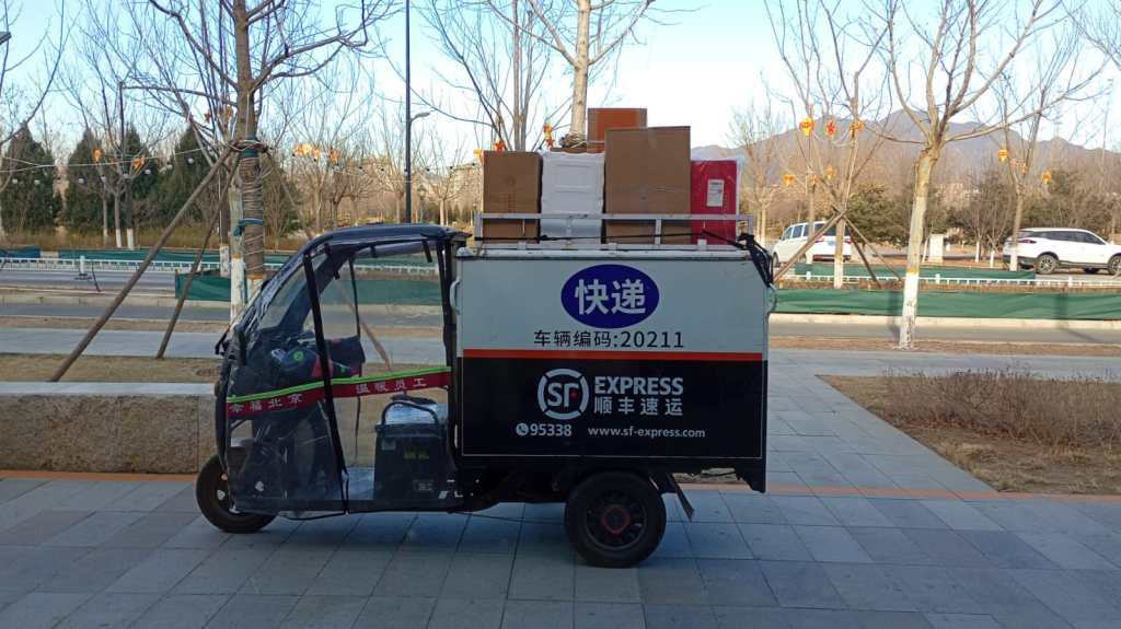 The delivery guy goes to the cabin and puts things there. Then drives and goes to building 1 and delivers to the different floors. Then to building 2. Then to building 3. Then 4…There are 12 buildings here, each of 10 floors, each floor with 5 rooms. I would imagine that then they go to the nearby areas and repeat. Delivery guys are heroes sincerely.