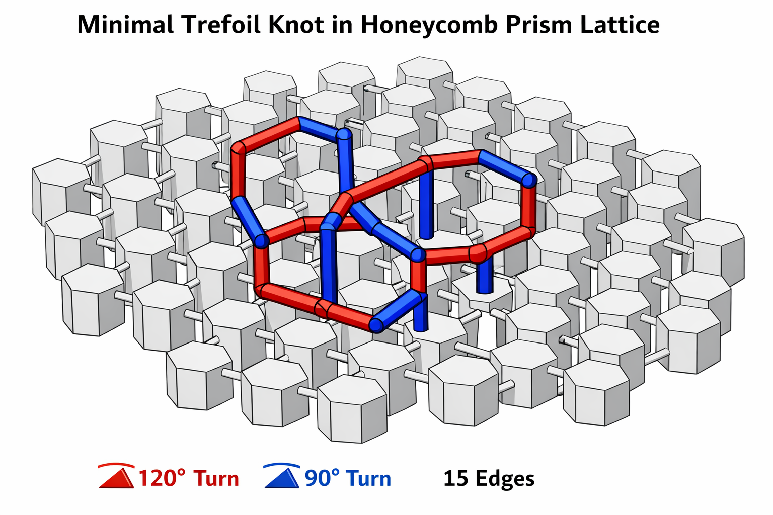 We were studying the proof of this result. It uses some ideas from Morse Theory and while ChatGPT was explaining to me the main ideas of the proof and I was checking what it said and the main sources, we discussed lattice knots. Very fast we landed into the honeycomb 3D lattice. This are hexagonal prisms stacked, is like a honecomb layer, that copies itself and lands on top of itself perfectly for another layer, and then another layer, and then another layer, and so on. It is a studied lattice. We were using this as an example to see minimal number of edges needed to knot somethins. Then, out of nowhere ChatGPT suggested to find some minimal knot in this lattice. I say out of nowhere because I was not expecting ChatGPT to suggest to find a knot, much less a minimal one, because it is actually hard to find those numbers. A lot of work goes into finding them.