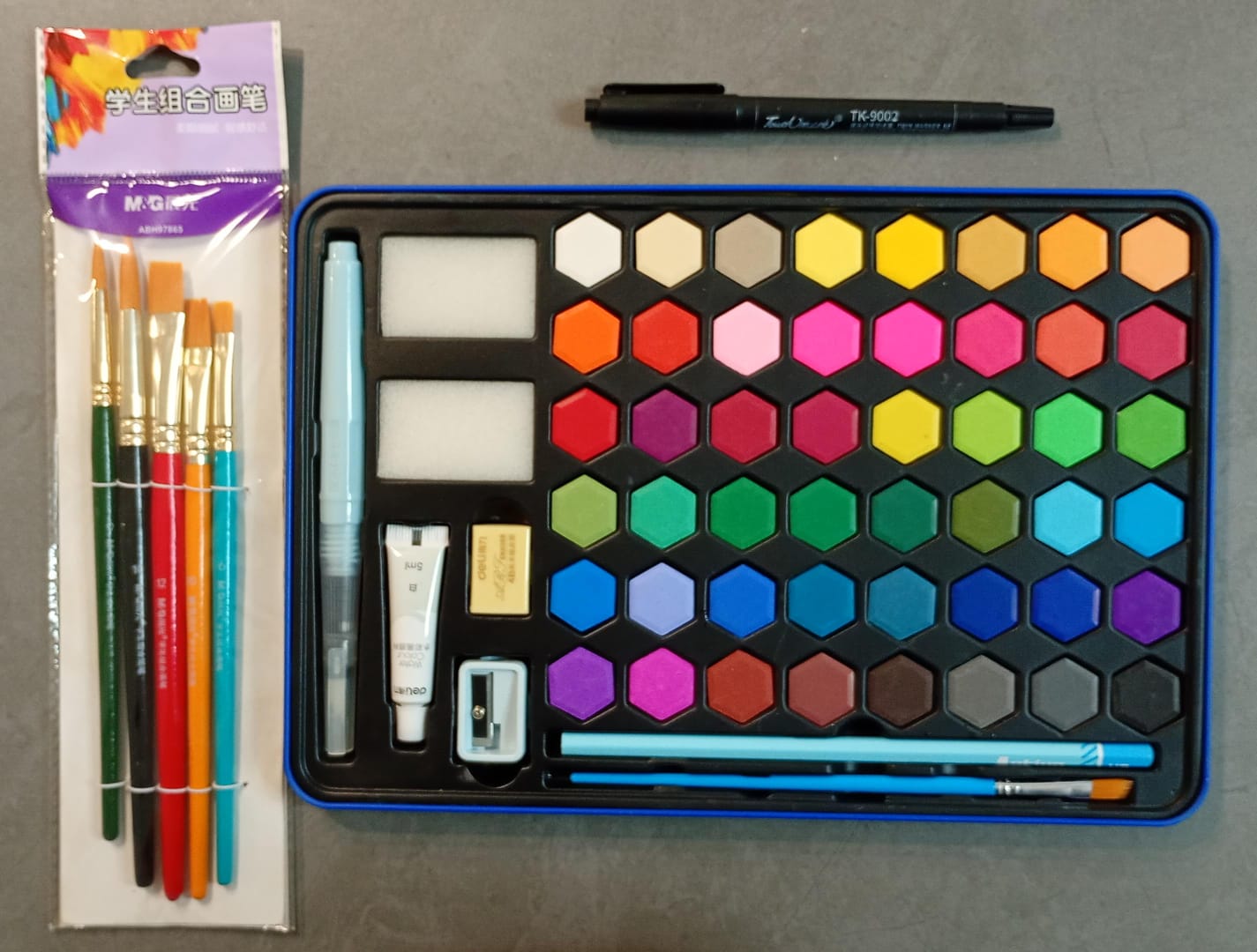 The watercolors in the picture are the ones I really liked. I confess that part of it was how aesthetically pleasing they look. I saw some videos on people using them, because they show them in the webpage, and it looks very pretty. I am ready to paint a bit!